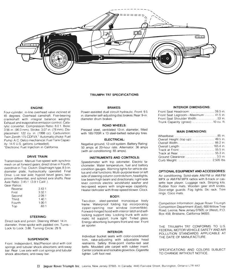 Triumph TR7 Convertible Spec Sheet