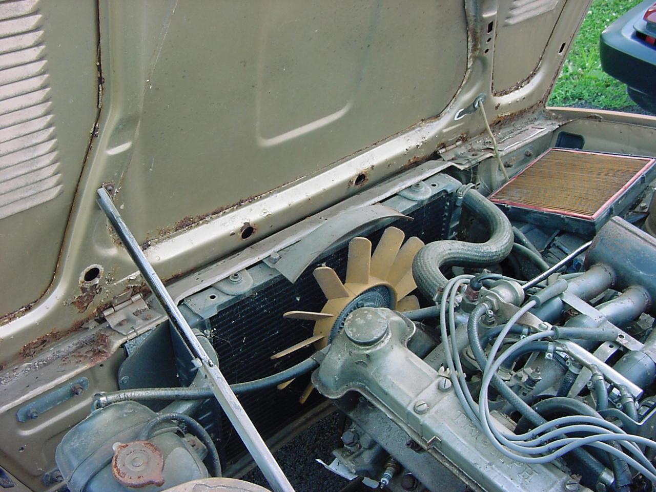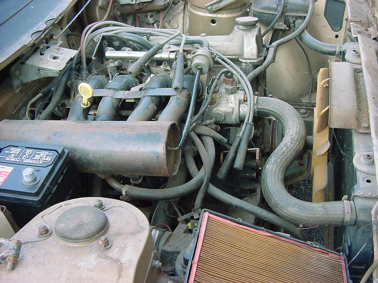 Engine pix follow: The alternator has been removed; also the exhaust manifold is off (DPO replaced it with a header; this FI car needed an O2 sensor to run properly and the header didn't provide one...)