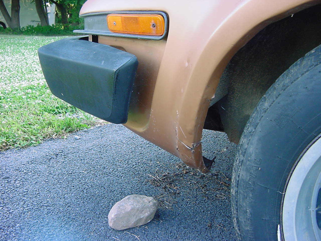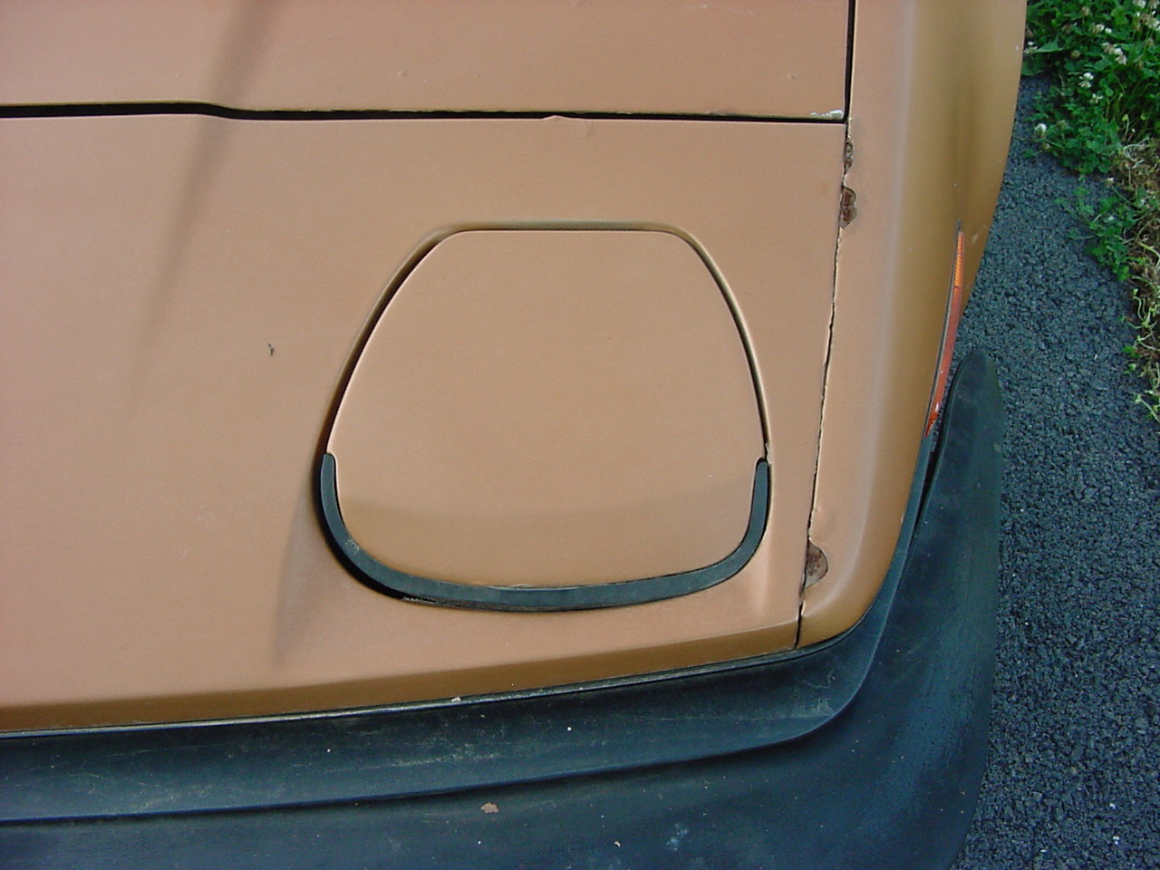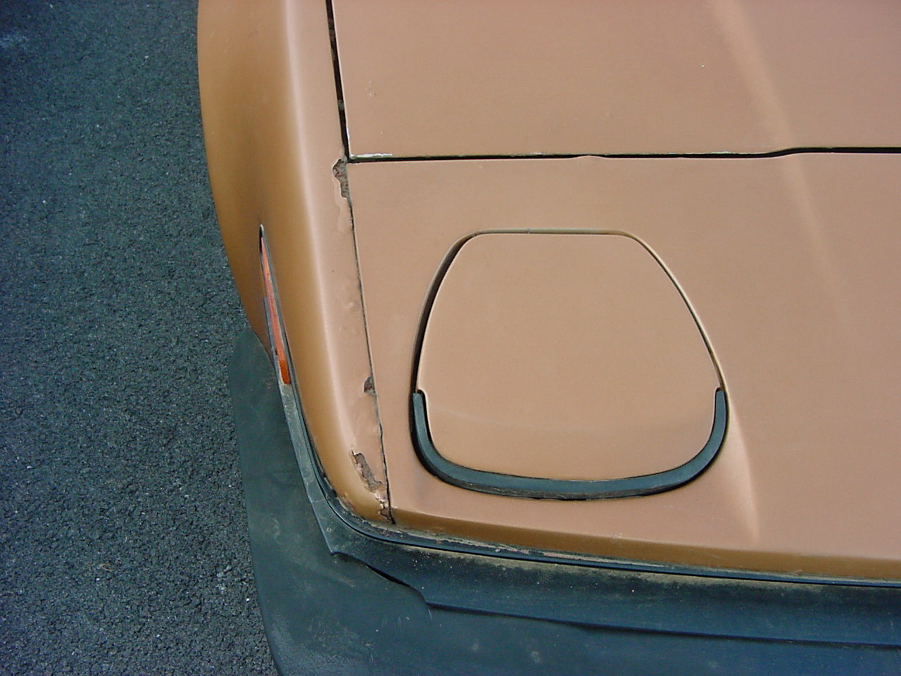 The car is a 1981 Fuel Injected specimen, with the body overall in good shape. The car has been repainted over the "light gold" original color. The top was torn badly and the driver's door caved in by a large piece of firewood (before it was split, I expect). There is still some broken glass inside.